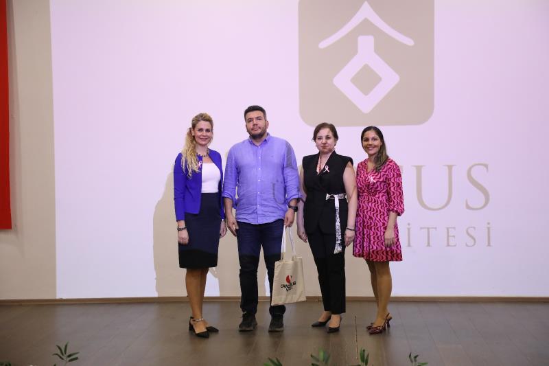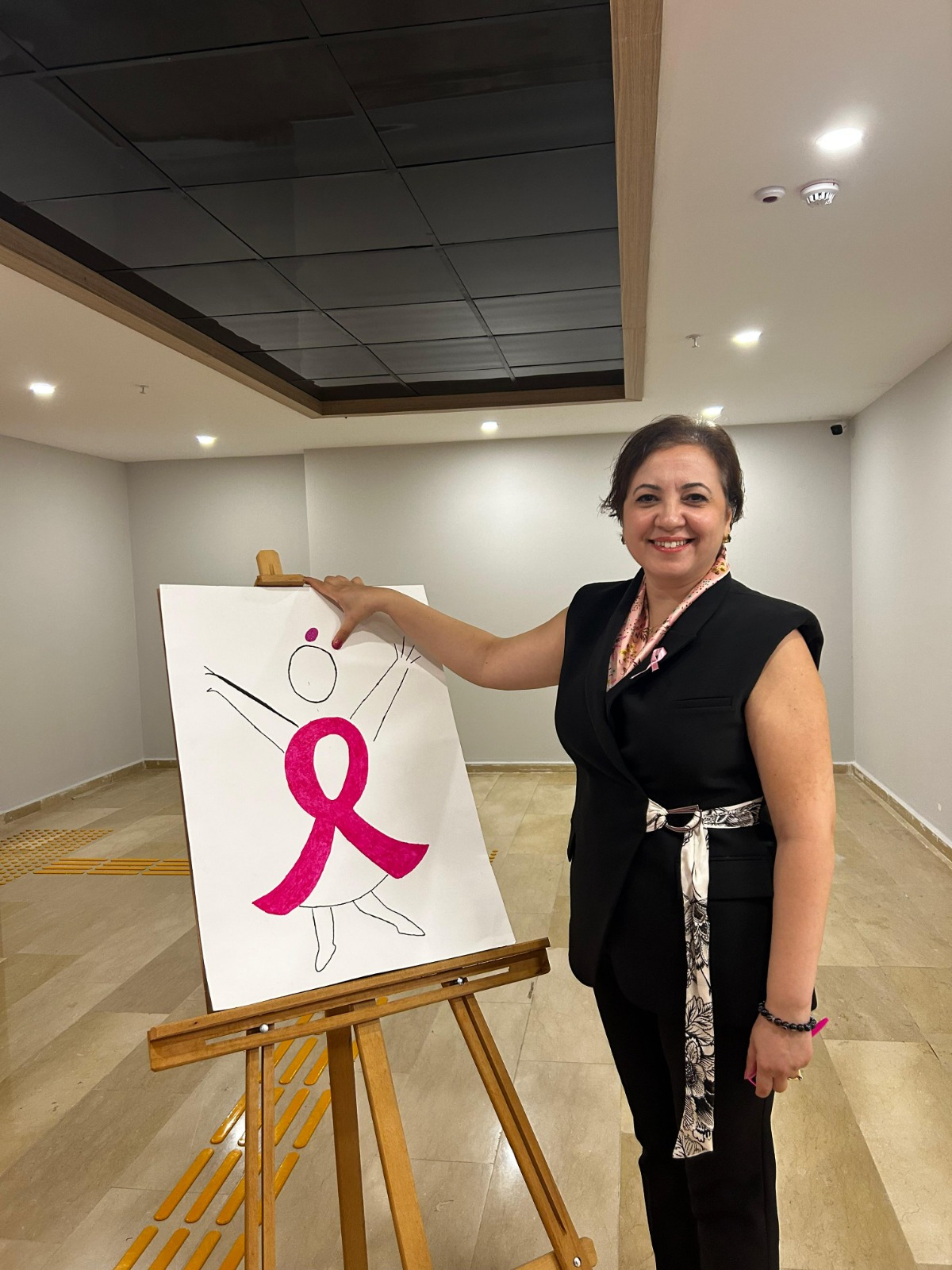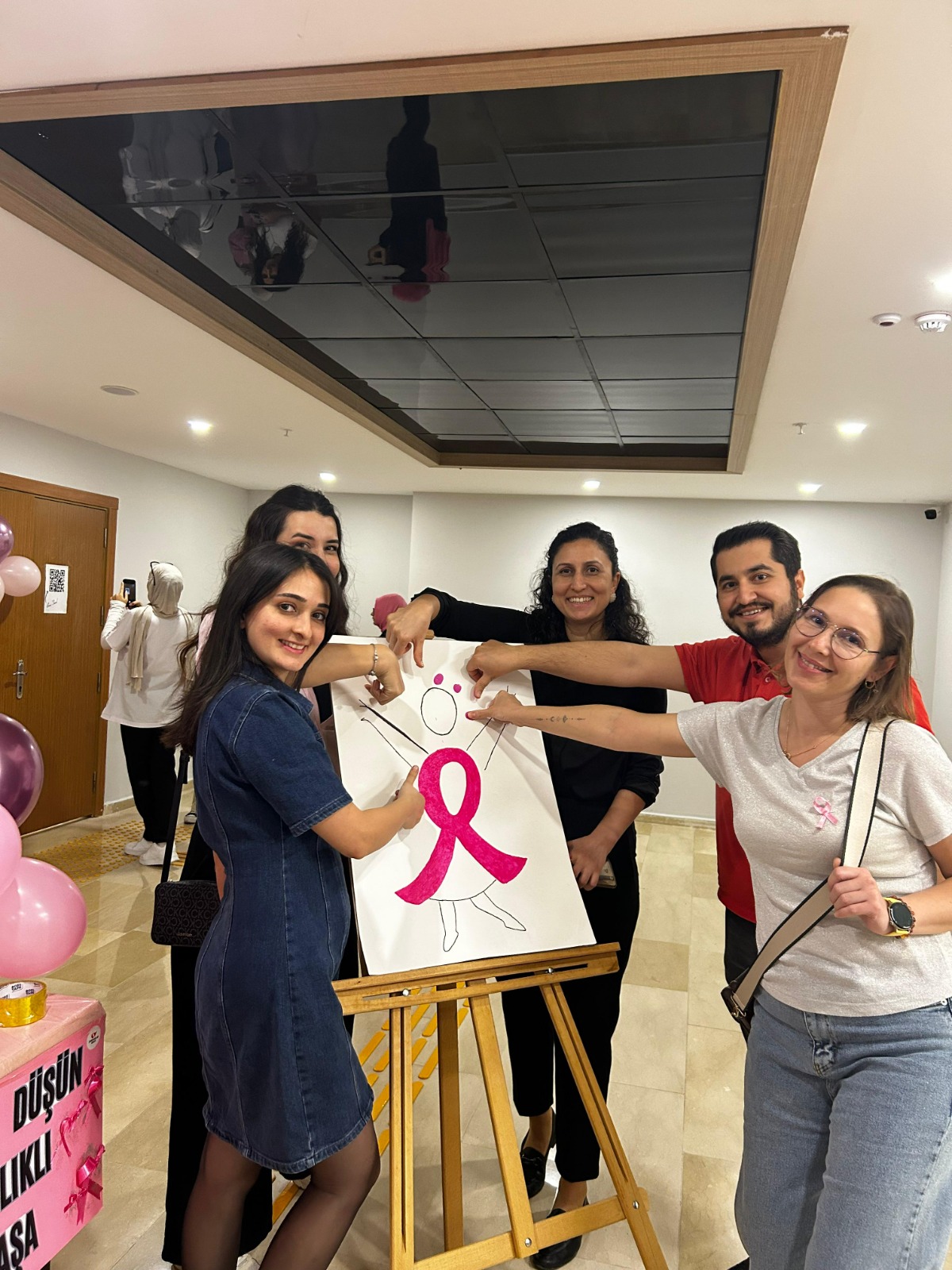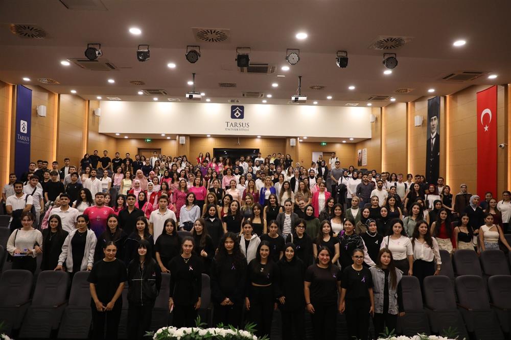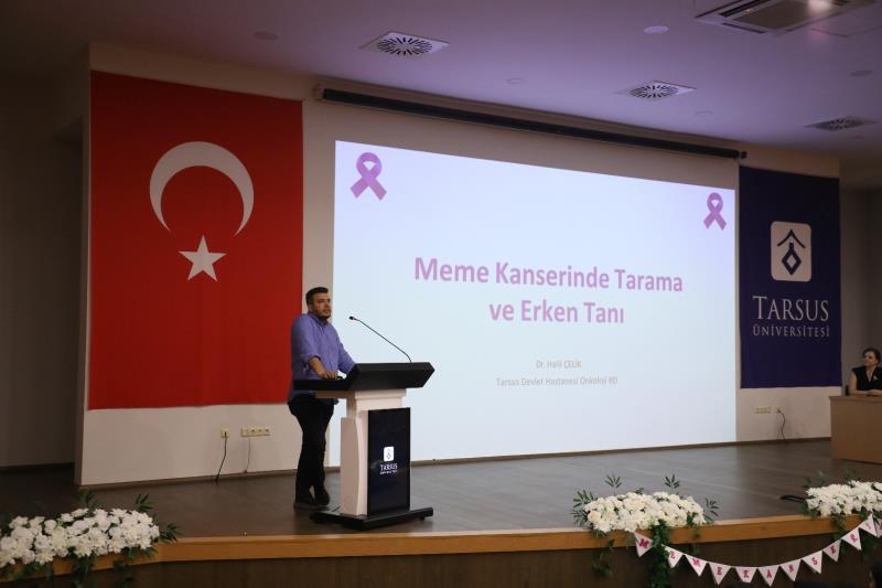 Hemşirelik Bölümümüz tarafından düzenlenen, aynı zamanda etkinliğin moderatörlüğünü üstlenen Dr. Öğr. Üyesi Derya GEZER ve Dr. Öğr. Üyesi Ezgi MUTLUAY YAYLA ve etkinlikte görevli öğrencilerimizin büyük bir heyecan ve özveri ile hazırladığı “Meme Kanseri Farkındalık Etkinliği” 30 Ekim 2025 Perşembe Günü Saat 13:00’de Şehit İstihkam Üsteğmen Ozan Olgu Köreke Konferans Salonu’nda yoğun bir katılımla gerçekleştirildi! Etkinlikte konuşmacı olarak yer alan İç Hastalıkları Uzmanı Medikal Onkolog Uzm. Dr. Halil Çelik tarafından meme kanseri ile ilgili olarak; korunma ve risk faktörleri, belirtileri, teşhis ve tarama yöntemleri hakkında bir konferans verildi. Ayrıca etkinlik kapsamındaki “Kendi Kendine Meme Muayenesi (KKMM)” videosu ile soru sorma fırsatı katılımcıların öz yeterlilik ve farkındalıklarını harekete geçirmelerini, konuyla ilgili merak ettiklerini gidermelerini sağlanmaya çalışıldı. Etkinlik sonrası hazırlanan stantta maket üzerinde KKMM gösterilmiş, çeşitli bilgi broşürü ve afiş çalışmalarıyla farkındalık yaratıldı.