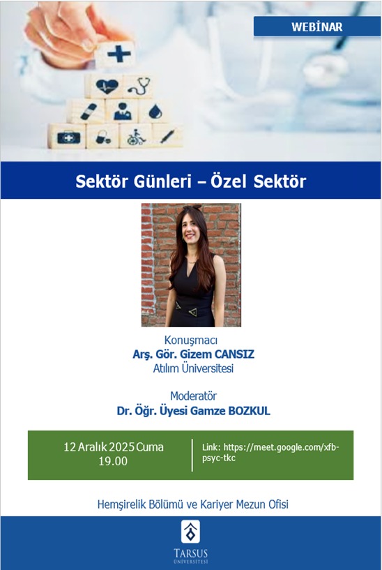 Hemşirelik Bölümü ve Kariyer Mezun Ofisi İşbirliğinde hazırlanan "Sektör Günleri - Kamu Sektörü" adlı webinar 12 Aralık 2025 Cuma Tarihi Saat 19:00'da gerçekleştirilmiştir.